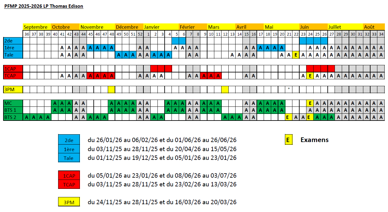 Cet article donne un accès direct aux 2 derniers calendriers de stage (PFMP). Pour plus d'informations, rendez-vous dans l'onglet PFMP.